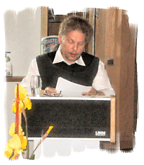 ■ Wolfgang Schwarz gehört zu den interessanten Doppelexistenzen, die sowohl Arzt – Facharzt für Neurologie – als auch bildende Künstler sind. Ich hatte die Freude, mit ihm eine zeitlang in der Abt. für Psychotherapeutische Medizin des Christlichen Krankenhauses Quakenbrück zusammenzuarbeiten. Dort fand auch – im September vergangenen Jahres – die erste Präsentation der Ausstellung statt. Am Abend der Eröffnung entwickelte sich ein Traum: "Es ist gesund …" muss auf Reisen gehen. Der Traum ist Wirklichkeit geworden. Ihnen nun hier, mit einigen einführenden Worten Wolfgang Schwarz' Installation "Es ist gesund …" vorzustellen, bedeutet für mich – eine Ehre und Herausforderung zugleich. Aber ich dachte mir: "es ist gesund, etwas zu wagen". Kunst lässt sich nicht auf den Begriff bringen, man kann sie mit Worten nur umkreisen. Wahrnehmungseindruck und Sprache stehen nicht im Verhältnis eindeutiger Stellvertretung, sondern eher in einem der freien Übersetzung. So will ich Ihnen hier nur meine Gedanken und Assoziationen schildern, eine Anregung, nachher selbst der Augenlust und dem Interpretationsspiel zu frönen. |