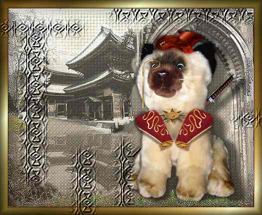 Wir sehen hier Zebulon - bekannt als Kendo-Kater, Archivar in der Großen Bibliothek von Murpelpotanien - vor seinem Haus in Myoto. Als Grossmeister des Doppelns ist keine seiner Erscheinungen [bzw. Photos] eindeutig verifizierbar. Ebensowenig kann sein Alter bestimmt werden, da er sich regelmäßig jenseits der Schattscheiderschen Zeitschneise aufhält.