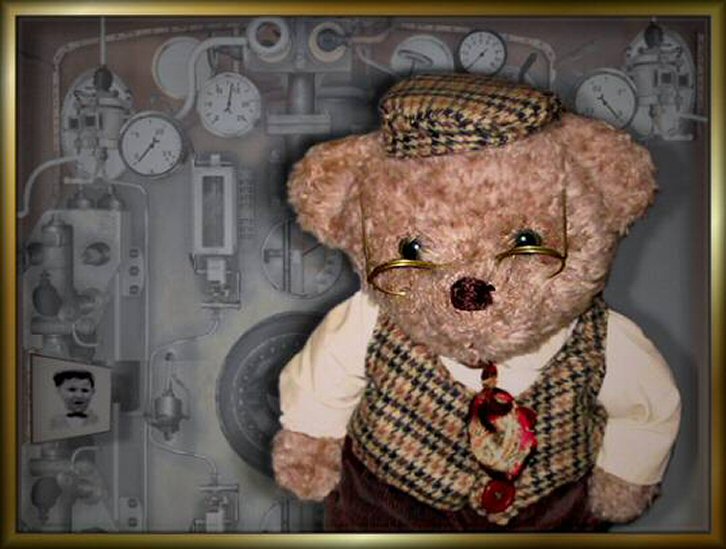 Murpel vor einer Steuereinheit des ersten TraHoloVals. Die Aufnahme entstand im Historischen Museum von Murpelpotanien. Oblomow behauptet jedoch, es sei ein Schnappschuss aus dem Heizungskeller der Großen Bibliothek.
